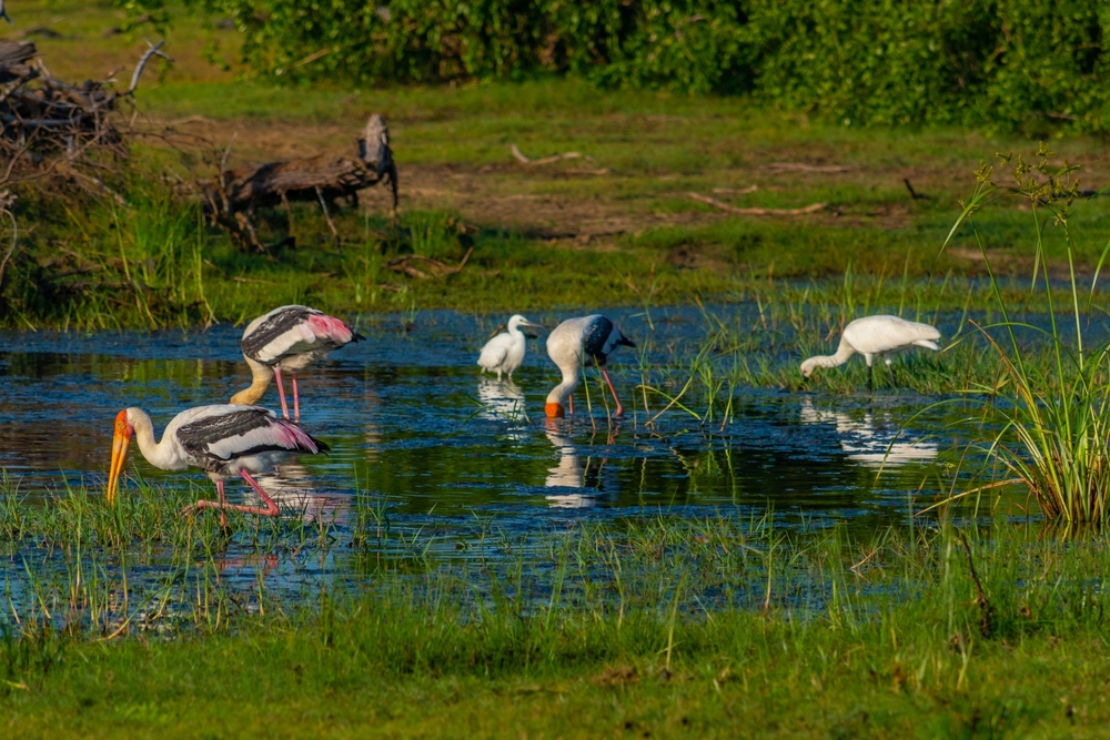 Der Bundala-Nationalpark liegt in der südlichen Provinz Sri Lankas und ist ein UNESCO-Biosphärenreservat, das für seine Feuchtgebiete und seine vielfältige Vogelwelt, darunter Flamingos, bekannt ist. Es ist ein Paradies für Zugvögel und bietet Besuchern die Möglichkeit, Elefanten, Krokodile und Axishirsche inmitten von Lagunen und Dünen zu sehen.